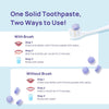 - Just chew one tablet until it turns into a paste. Then either brush as usual or swish the paste in your mouth for 2–3 minutes before rinsing. It’s perfect for home or travel—no toothpaste tube needed!