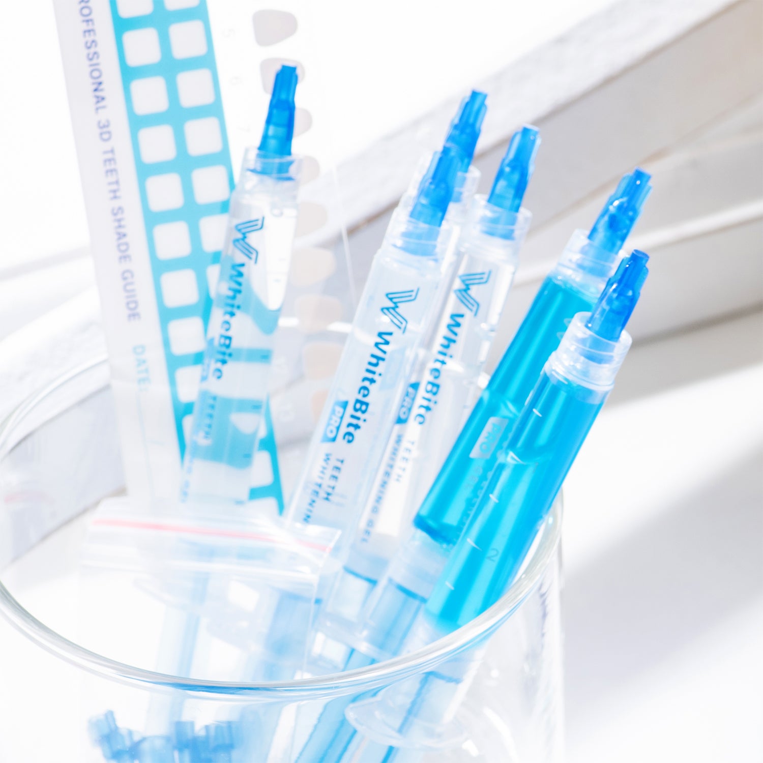 • To help reduce sensitivity, you can apply the blue desensitizing gel either before or after your whitening session, depending on your needs: